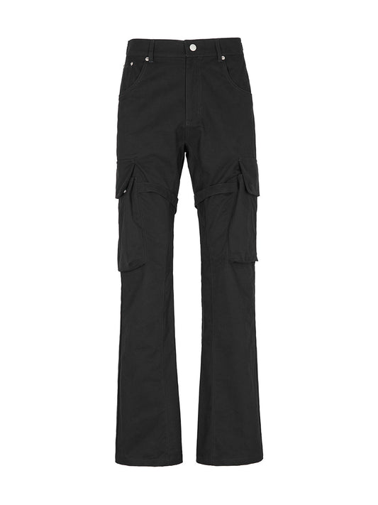 LABT Retro Multi-pocket Stitching Black Micro-flared Trousers High Street Lovers Four Seasons Country Trend Casual Pants