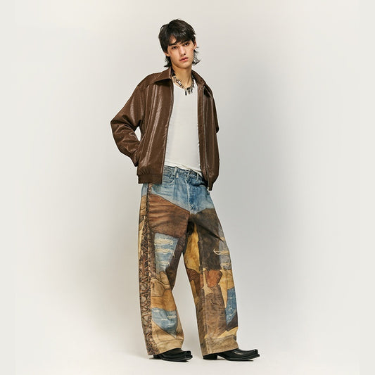 Vintage Patch Digital Printing Jeans Pure Cotton Casual Pants