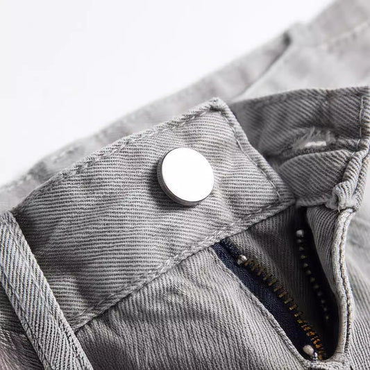 American High Street Hole & Patch Trendy Retro Straight Jeans