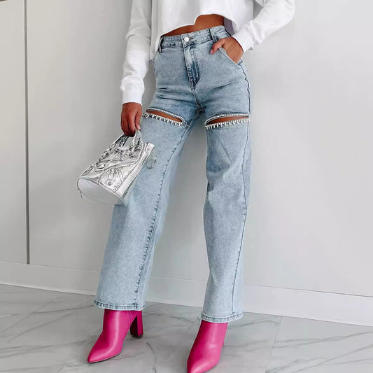 Fashion Straight Wide-leg Jeans Casual High-waist Non-elastic Womens Clothing