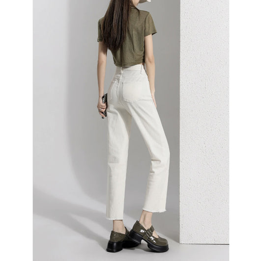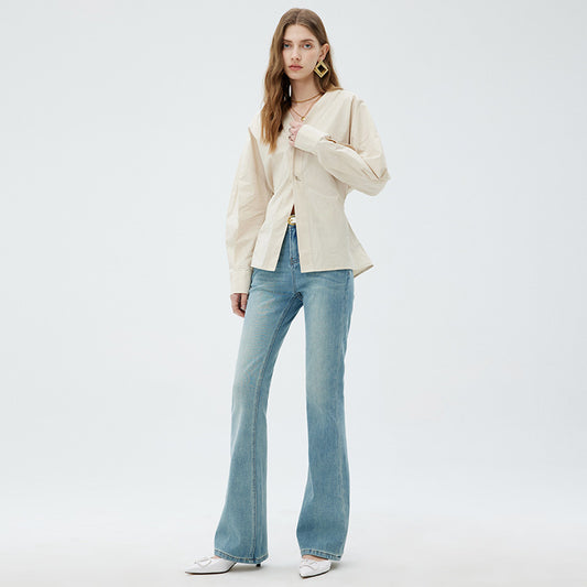 Denim High Waist Loose And Slimming Bootcut Trousers