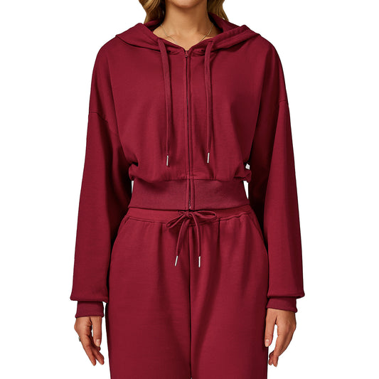 Women Plain Front Zipper Long Sleeve Simple Hoodie