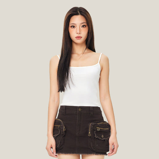 Women's Round Neck Pompon Sleeveless Adjustable Camisole