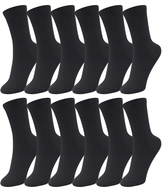 Duufin 12 Pairs Womens Crew Socks Mid Calf Socks Womens Black Crew Socks Size 5-9 Workout Socks Women Gym Socks Plain Black Socks Crew Lightweight Casual Socks