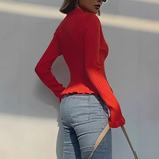 Women's V-neck Flounce Knitted Cardigan Sweater
