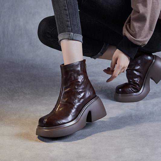 Autumn And Winter Genuine Leather Chunky Heel Martin Boots Ankle Boots