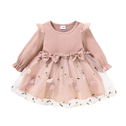 Baby Girl Western Style Dress Embroidered Lace Vest Skirt