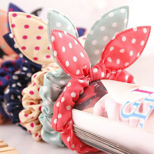 Knotted Fabric Polka Dot Bunny Ear Hair Tie