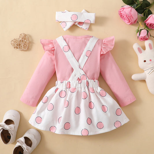Polka Dot Rabbit Affixed Cloth Embroidered Suspender Skirt Outfit