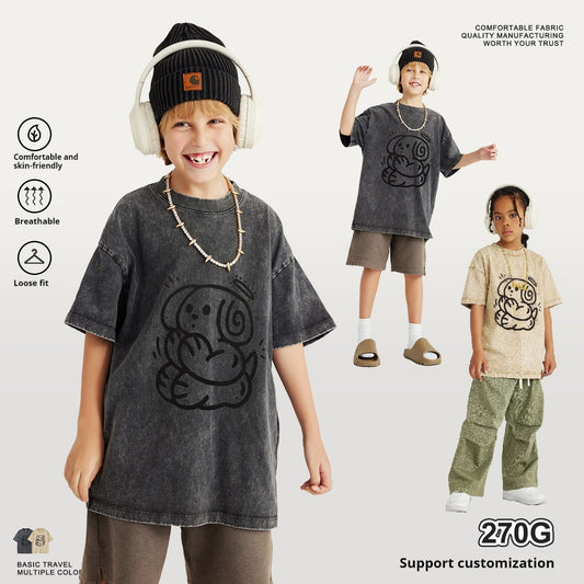 Children's Clothing Cartoon Knitted Heat Press Round Neck T-shirt