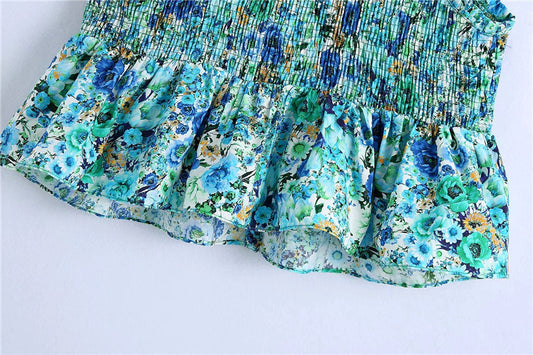 New Slim Fit Slim Versatile Sleeveless Frill Print