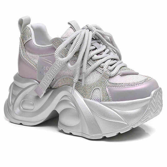 Glitter Sequin Design Flats Shoes Women Trendy Casual Thick-soled Lace-up Sneakers Fashion Skateboard Shoes
