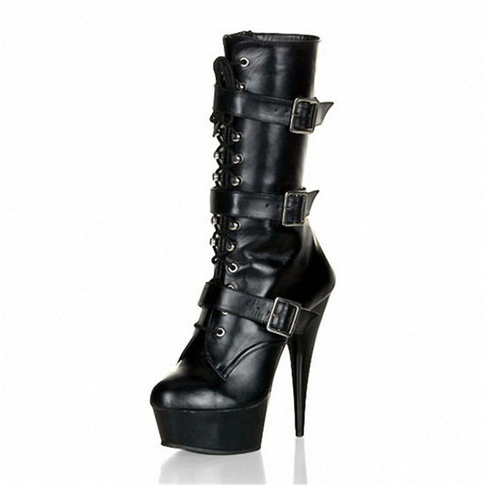 Women's 15CM Ultra-high Heel Low-cut Hollow-out Platform Belt Buckle Boots