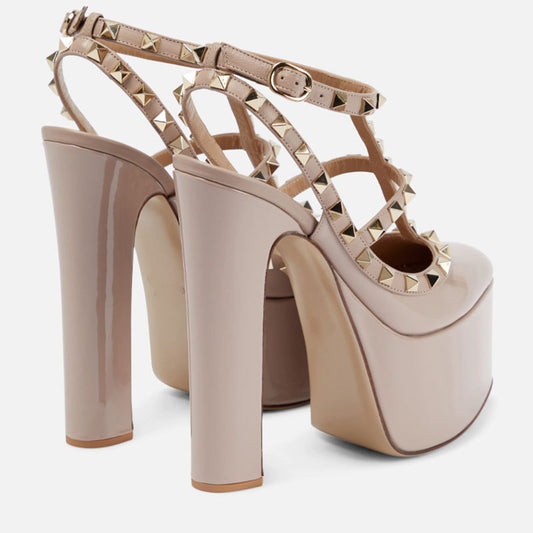 Rivet Round Head Strip Waterproof Platform Thick Heel Pumps