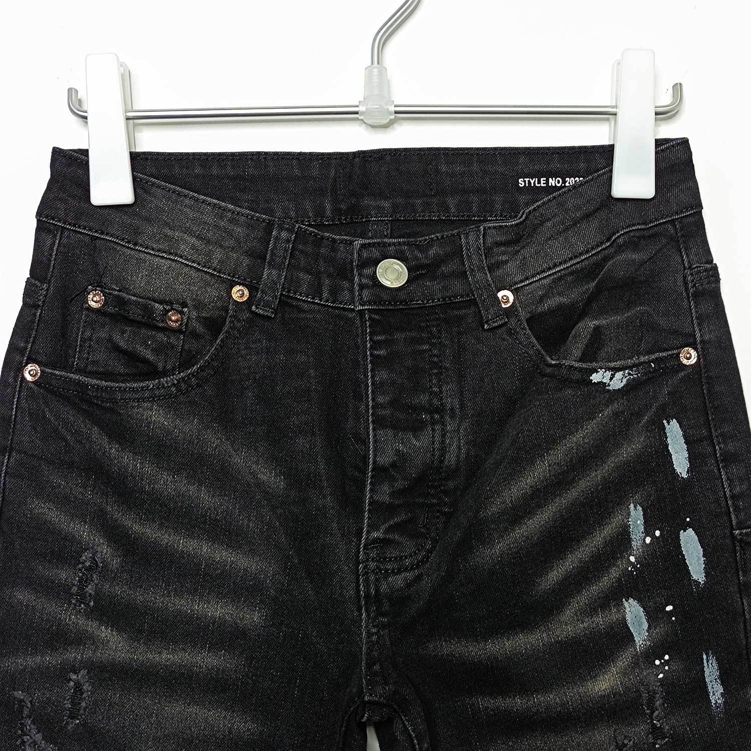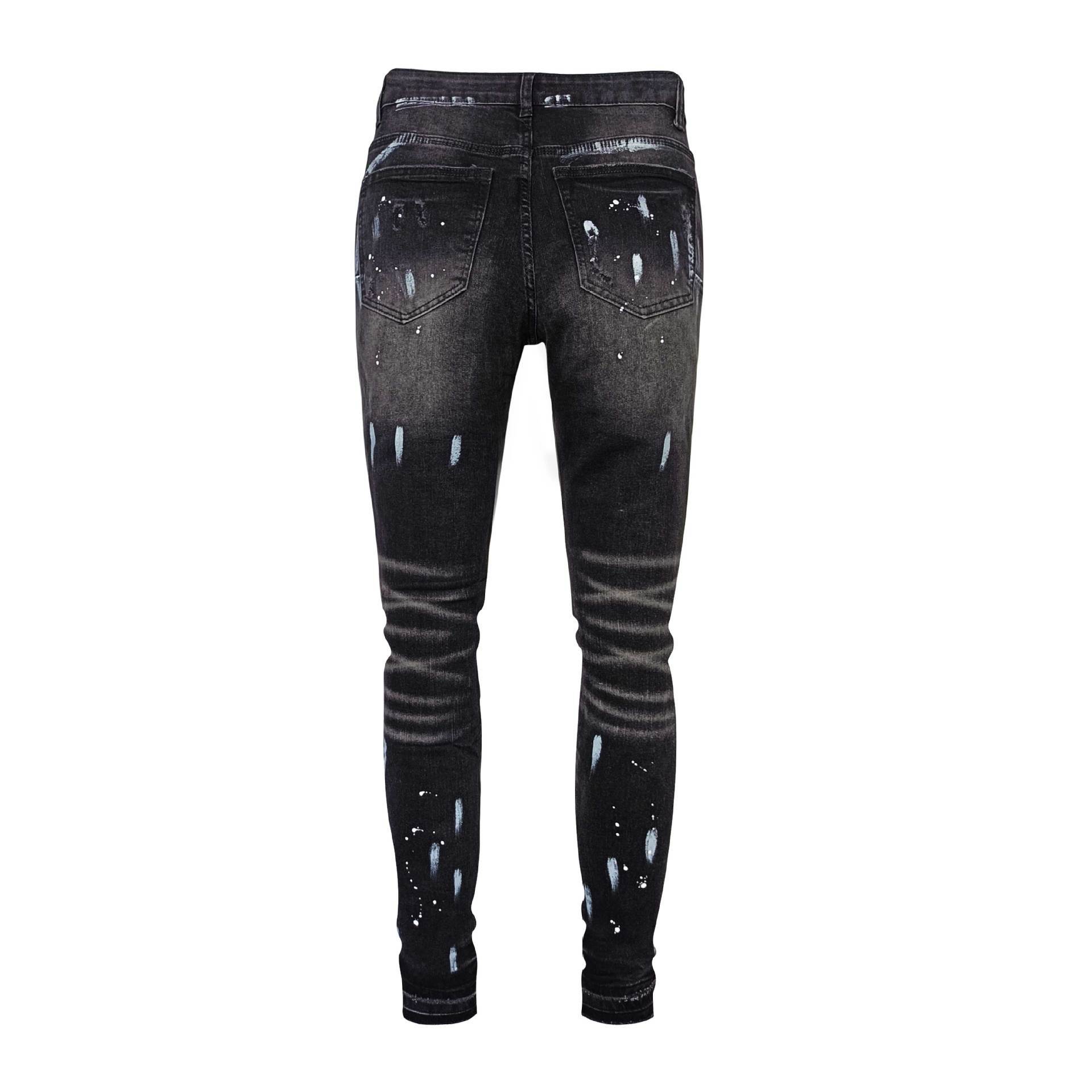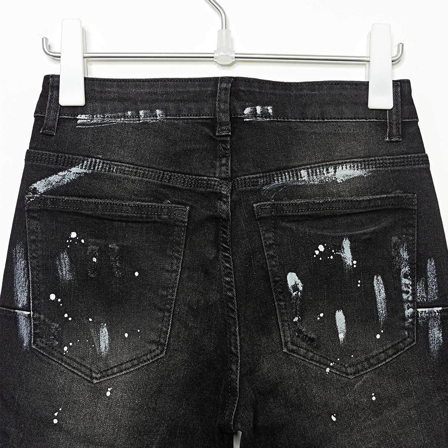 American High Street Ripped Stretch Paint Splash Straight Jeans Men