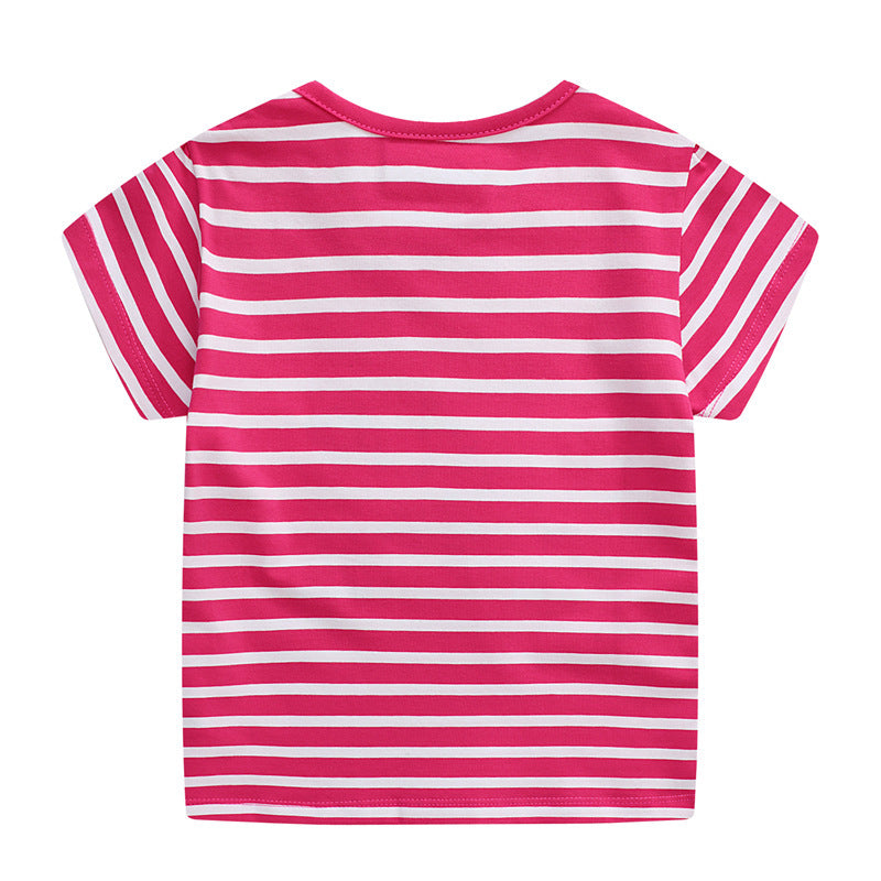 Girls Short Sleeve T Shirt Summer Embroidered Dinosaur