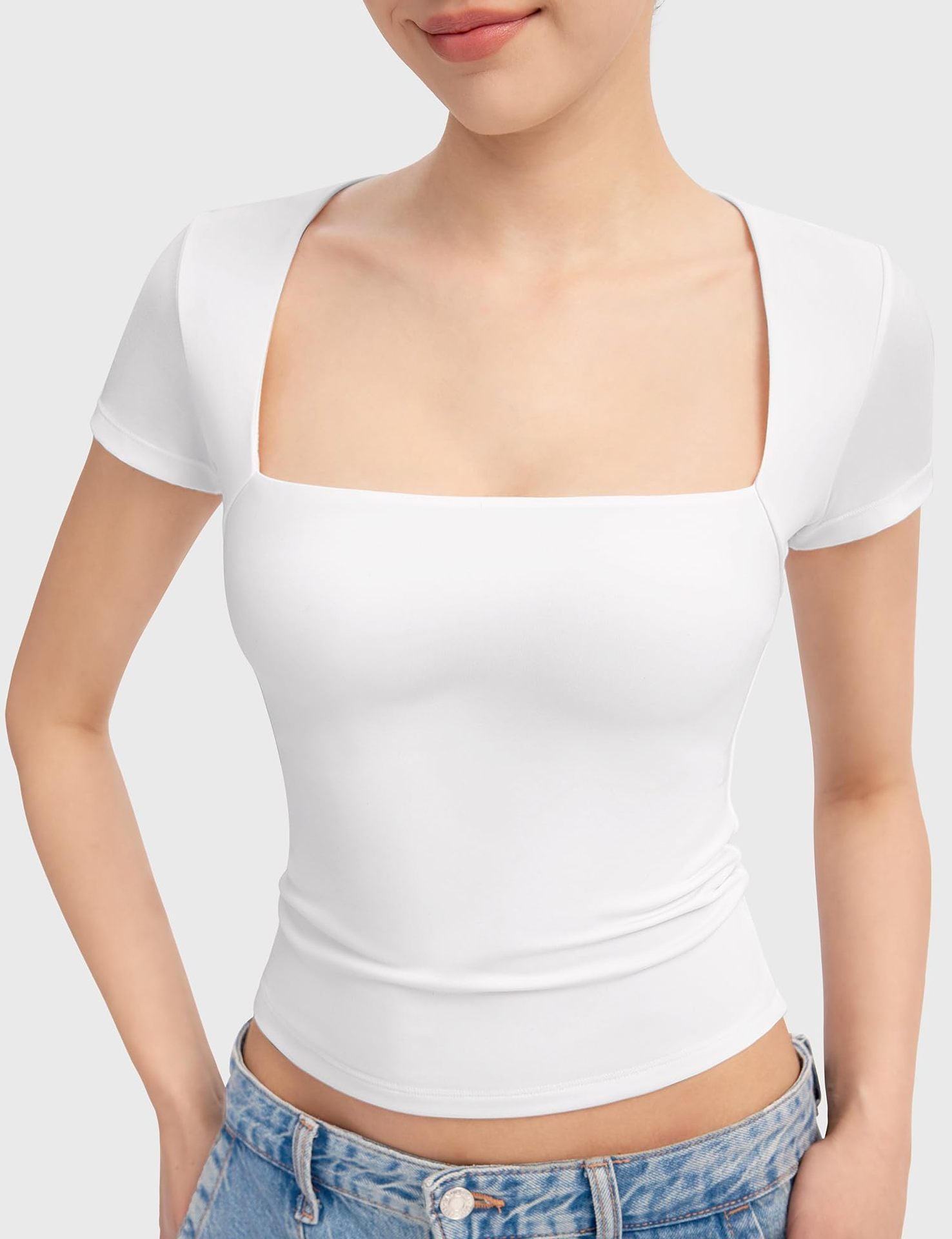 Summer Short-sleeved Square Collar Low-cut Women's T-shirt Top