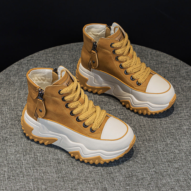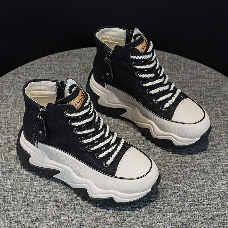 Women's Height Increasing Insole 7CM Leather Platform Shoes